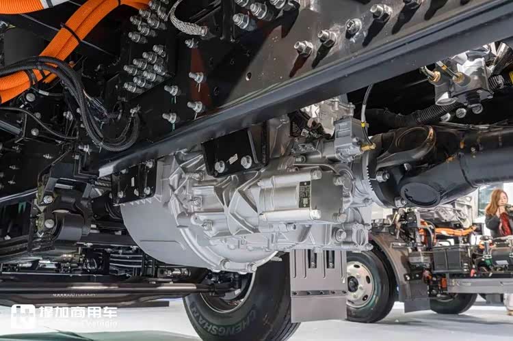 前桥采用6.5吨鼓式制动车桥,匹配康迈免维护轮端。这款轮端采用油润滑技术,较传统脂润滑而言,散热效果更好、转动阻力更小。端盖采用透明视窗设计,驾驶员及维保人员可快速观察轮端内部的油液状态与液位,灵活规划维护保养,为用户创造更大价值。