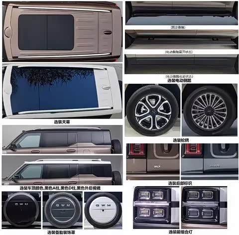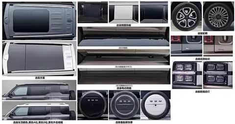 新车的尾部采用纵置尾灯,搭配侧向开门设计与挂式备胎,辨识度拉满。另外,新车的选装配置丰富,包括天幕、车顶颜色、黑A/D柱、黑外后视镜、备胎装饰罩等。