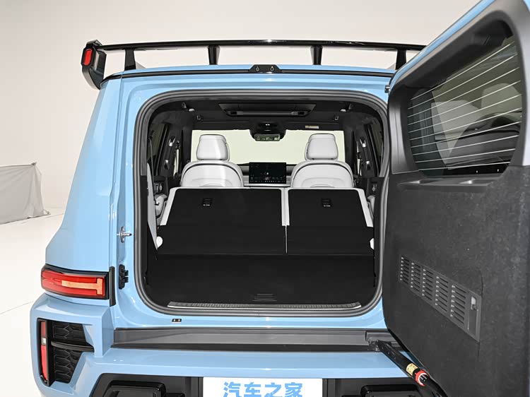 新款坦克700的设计核心围绕东方力量美学展开,选用瑞兽“麒麟”作为设计语言,这一设计思路让整车拥有了独树一帜的视觉标识,区别于市面上常见的硬派SUV风格。前脸部分,多边形的前格栅是视觉焦点,内部点缀着点阵式的亮黑色元素,没有过度夸张的装饰,却能凸显出沉稳的气场。与之搭配的是机械旋转开合式激光大灯,官方将其命名为“瑞麟之眼”,点亮时,260颗LED灯珠会随着机械叶片的旋转逐步亮起,可变激光光源被应用在远光灯上,最远照射距离可达260米,既保证了夜间行驶的安全性,也让前脸更具灵动感,仿佛瑞兽从沉睡中苏醒。车身侧面的设计同样延续了麒麟的意象,近1:1的车身高宽比带来了强烈的体量感,勾勒出麒麟昂首蹲踞的姿态,再加上长达2860mm的超长一体式铝合金饰条,摒弃了传统的分段拼接工艺,让车身线条如麒麟背脊般流畅,也提升了整体的高级感。尺寸方面,新车的长宽高和轴距数据,刚好适配中大型SUV的定位,既保证了车内空间的充裕,也没有过于臃肿的视觉感受。尾部设计兼顾了硬派属性与细节质感,横向排列的尾灯组简洁大气,侧向开门结构搭配外挂式备胎,是硬派越野的经典设计,自带粗犷气场。除此之外,尾部还配备了官方命名为“祥麟焰尾”的悬浮扰流板,这款扰流板历经多轮优化测试,不仅能降低高速行驶时的风噪,还能营造出超跑级的动态观感,其灯光从两侧点亮时,在车流中有着很高的辨识度。配色上,新车除了提供专属的“敦煌青”外观颜色,还搭配了千峰翠、玄武黑、远山灰等自然系车色,“敦煌青”灵感源于敦煌壁画,淡蓝为彩、银灰为韵,将传统文化与当代审美完美融合。