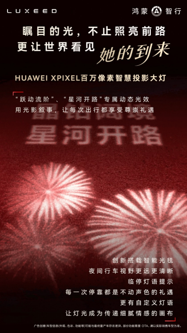 智界V9所搭载的全新一代DLP智慧投影大灯更将车灯升级为“情感传递画布”,4种高频主题模板与自定义文字功能,让迎宾灯语既能承载商务庄重感,也能捕捉亲子温馨瞬间;“跃动流阶”“星河开路”两种专属灯效,还有家族经典的“马到成功”等动态光效,打造沉浸式视觉盛宴。刘亦菲的代言加持,与这种“光影叙事”调性完美契合,其优雅先锋的气质与智界V9的科技豪华感形成共鸣,精准触达追求品质生活的高净值人群。