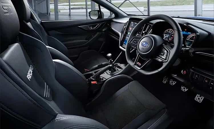 车色方面仅提供 WR Blue Pearl 拉力蓝、Ceramic White 陶瓷白 与 Sunrise Yellow日出黄 三种选择,其中后者为加价项目。座舱则以驾驶导向为核心,标配 Recaro 跑车座椅,采 Ultrasuede 与合成皮革混搭,并以黄色打孔与 STI 标志点缀。方向盘、排档头与手刹车拉柄皆采皮革包复,另提供 STI 专属脚踏垫与排档头等选配项目。