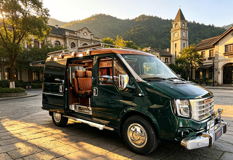 展厅里福顺宿营车现车摆着。你把后排床展开,整个人躺上去,打开空调听一下噪音,翻翻储物空间——比你网上看一百篇评测都管用。