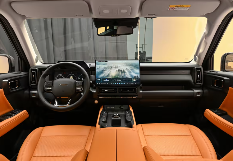 内饰依旧采用猛龙风格,新换的三幅式方向盘按键更多且实用一些。液晶仪表、抬头显示以及悬浮中控屏让人眼前一亮;界面更时尚了,保留的物理按键和怀挡,操作也更顺手,比起坦克 300 的内饰配置更符合家用需求。