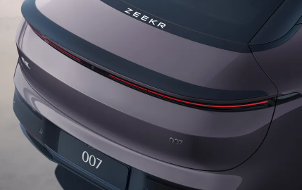 尾部方面,新款极氪007采用了贯穿式尾灯设计,并取消了老款车型类似水波纹的设计元素,整体造型更加简洁利落,尾部后备厢顶部设计有略微上翘的小鸭尾,下包围配备立体感十足的黑色饰板,两侧集成扁平反光条,有效拉伸了车尾的横向视觉宽度。