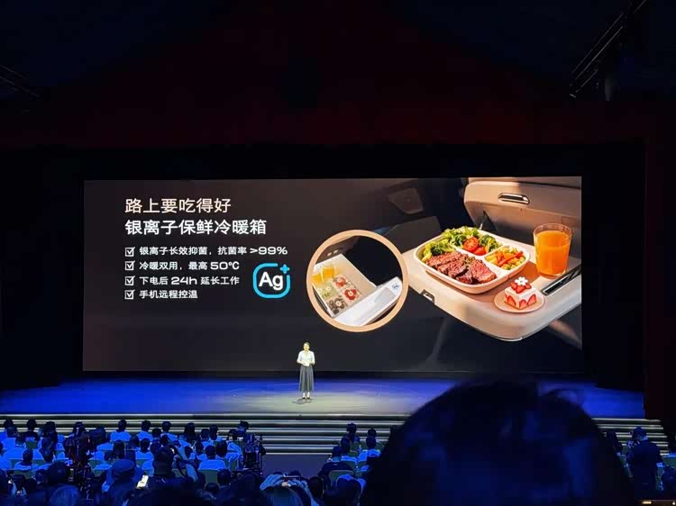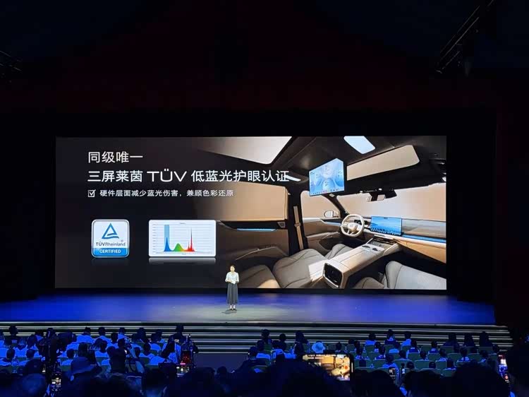 再譬如,它搭载的冷暖箱拥有银离子保鲜的作用,最高温度为 50℃。另一方面,至境 E7 座舱搭载了一套色温可调、照射范围不小,还通过了南德TÜV护眼认证,号称「同级唯一」。