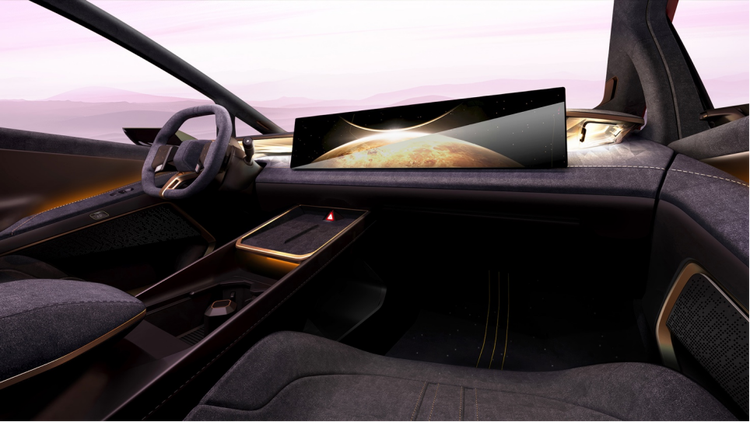 引领核心设计的现代中国设计室首席设计师文佳力对两款车型进行了差异化解读:VENUS CONCEPT(金星)灵感源自太阳系中最明亮的行星——金星,象征着纯电轿车的新曙光,代表突破、探索与荣耀。车身采用专属璀璨金配色,独特的单曲线一体化轮廓既蓄势待发,又富有情感张力。多项专属设计共同打造极致质感与辨识度:轻量化框架式车顶、透明尾翼和赛车中心锁风格的轻量化锻造轮毂,科技感拉满;独特的V型灯光系统、悬浮式透明后视镜,以及灵感源自“金唱片”的制动盘设计,令外观极具潮流感。内饰以水晶灵感氛围灯与环绕式光晕照明呼应金星的璀璨氛围,打造以驾驶者为中心的沉浸式座舱。雕塑感“金星曲线”座椅兼顾舒适与运动感,座椅靠背采用丝滑翻毛皮与金属铬金材质撞色设计,提升高端质感。更有隐藏式“彩蛋”设计与行星主题图案,拉近人与车的情感联结,将座舱从单纯的交通工具转变为专属的个人探索空间,全方位诠释纯电轿车的突破与创新。