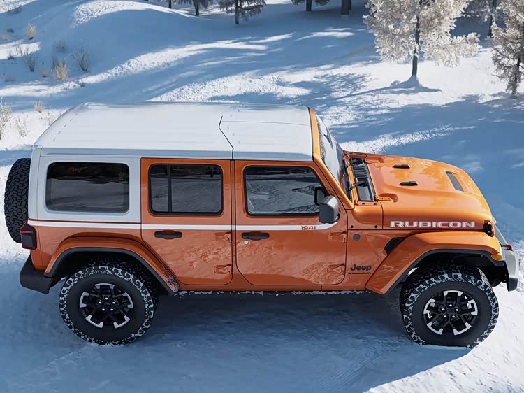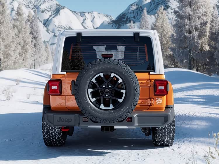 再来看车身侧面部分,车身侧面依旧是牧马人标志性的方正硬朗线条,可拆卸软顶、可拆车门的经典设计得以保留,满足越野爱好者的个性化需求。非承载式车体结构搭配252mm的满载最小离地间隙、36°接近角与31.4°离去角,赋予车辆强悍的通过性,无论是岩石攀爬还是泥泞穿越,都能轻松应对。车身尺寸方面,新车长宽高分别为4882mm、1931mm、1848mm,轴距3008mm,在保证越野灵活性的同时,为车内空间提供了基础。轮圈采用17英寸铝合金材质,搭配255/75 R17全地形轮胎,标配全尺寸备胎,进一步强化越野实用性。