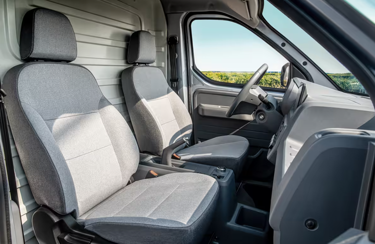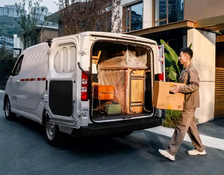 外观方面,作为年代改款车型,新车整体延续现款车型的外观设计,继续采用封闭式前脸,充电口设置在车标后方,尾门采用4/6比例对开,配合270°开合角度与595mm离地高度,可在车尾直接使用叉车装卸货物,装卸效率大幅提升。