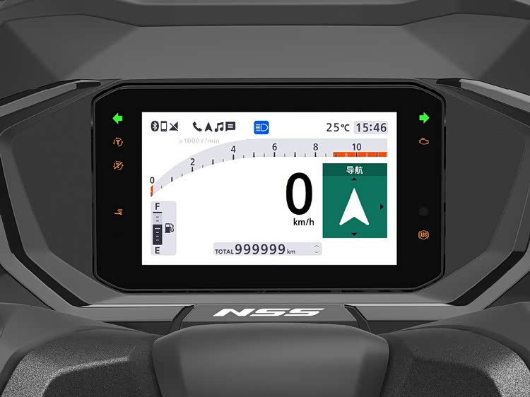 NSS350 底盘车身采用钢制摇篮结构设计,兼顾车身强度与轻量化,整备质量186kg,车身重心分布均衡,1510mm长轴距,既保证高速巡航的稳定性,又兼顾城市穿行的灵活性。780mm座高对身高170cm左右的骑手比较友好。储物能力是NSS350的传统强项,48L座桶空间能塞下两顶全盔。油箱容量11.7L,综合续航在300-350公里区间。