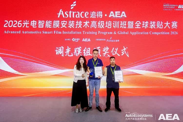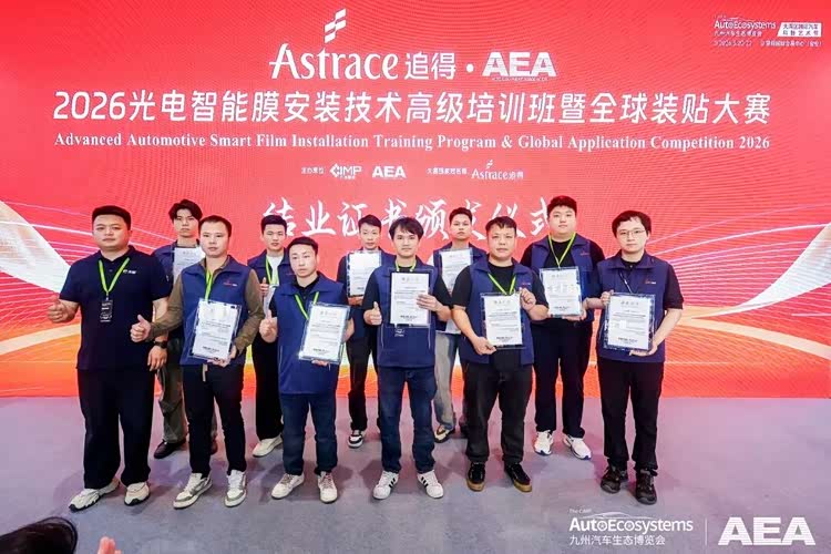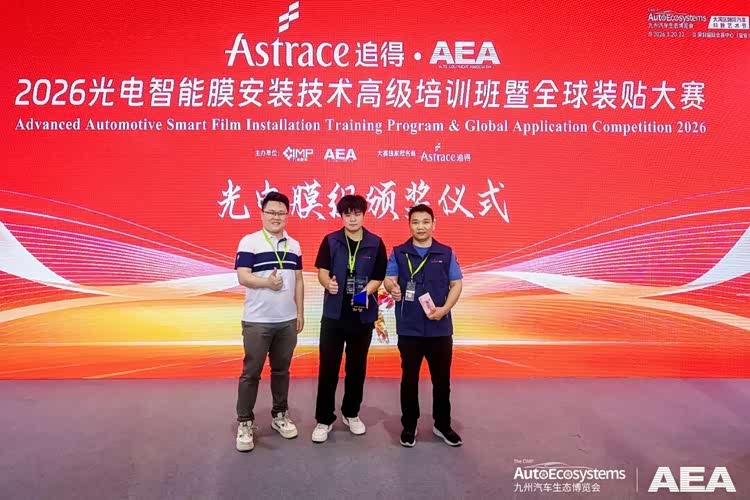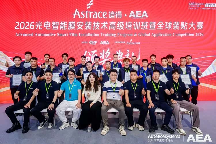 3月20日-22日,追得·2026AEA光电智能膜安装技术高级培训班暨全球装贴大赛在深圳国际会展中心(宝安)圆满举办。作为“2026大湾区国际汽车科技艺术节”的活动之一,本次活动立足于行业发展趋势,创新性地将技术培训与技能竞赛深度融合,打造集“教学、实操、竞技”于一体的专业平台,加速行业市场教育落地,促进光电膜产品与技术在终端市场的快速普及,推动施工技术升级与标准体系构建,引领光电智能膜行业向专业化、规范化与高质量的发展阶段迈进。