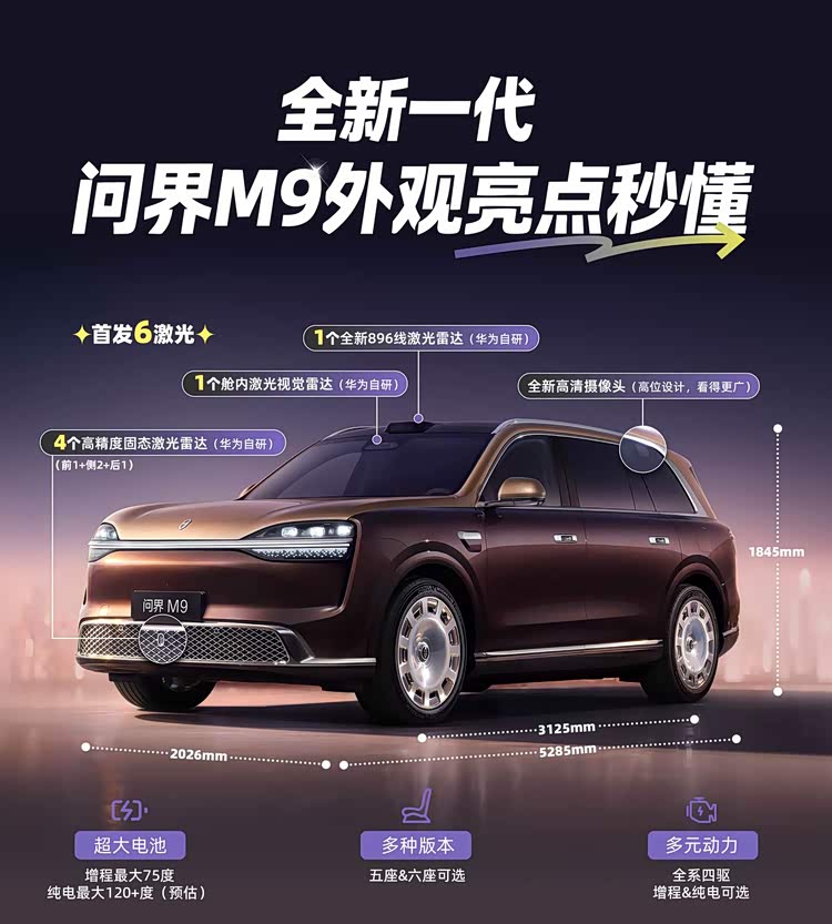 新款问界M9要来了,配6颗激光雷达,还有全主动悬架