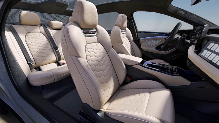 Q6L e-tron内饰和A6L e-tron同风格:四屏联动、超纤绒顶棚、真皮方向盘、氛围灯、门板发光、加厚座椅……豪华感、科技感、舒适度全部在线。