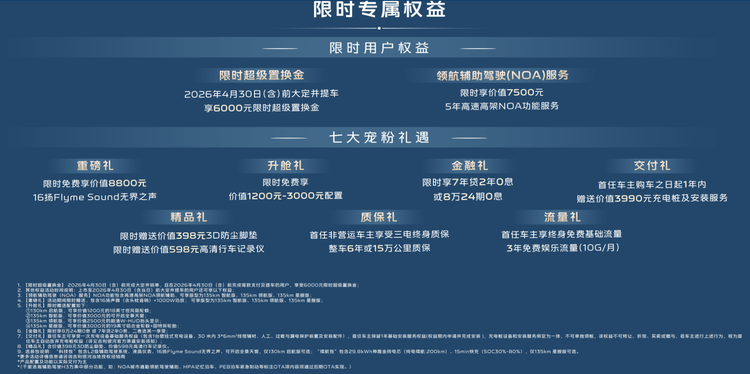 同时支持FlymeLink、HiCar、Carlink三种手机互联,上车即连,导航、音乐无缝流转。50W风冷无线快充、双音区语音控制、电动感应后备箱等配置,让用车更便捷。从智能驾驶到座舱交互,26款星舰7用实用科技化解用车痛点,让科技真正服务家庭出行。