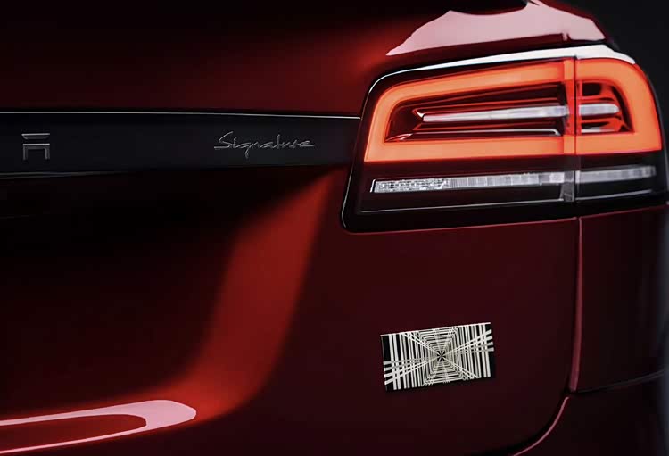 金色徽标:车头的特斯拉"T"标识为金色涂装,车尾则配有金色Plaid徽章以及专属的Signature徽章。这种"金闪闪"的设计风格,让人一眼就能辨认出这是一台签名版。