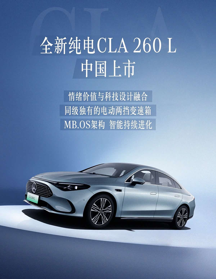 日前,全新奔驰CLA 260L完成了实车首次亮相,这款纯电轿跑的出现,填补了CLA系列在入门纯电市场的空白。奔驰官方同步公布了上市信息,这款新车将在4月24日开幕的北京车展上正式与消费者见面。在此之前,新车已经顺利通过工信部申报,相关的核心参数也随之曝光,其中最受关注的续航和电池配置,也有了明确答案,配备60kWh电池组,CLTC续航里程可达600公里,满足日常通勤和短途出行完全没有压力。作为CLA纯电系列的新增车型,它并没有盲目追求配置堆砌,而是在保留品牌基因的基础上,兼顾了实用性和性价比,和已经上市的300L型号形成差异化布局,给消费者提供了更多选择。
