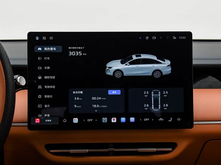 内饰走的是简约风格,没有复杂的装饰,却处处透着实用,车内最显眼的就是15.6英寸2.5K悬浮式中控大屏,内置高通骁龙8155芯片,这也是它的一个核心配置。车机系统支持语音控制和OTA在线升级,日常导航、多媒体播放这些常用操作,都能通过语音便捷控制,不用手动操作,提升了驾驶时的安全性。除此之外,基础的倒车影像、倒车雷达等辅助驾驶配置也没有缺席,能满足日常通勤的基本智能需求。中控台下部设计了手机无线充电面板,不用再额外插线,很方便,怀挡设计则节省了中控台的空间,让内饰布局更规整。车内后排空间很宽敞,坐满三个成年人也不会显得拥挤,而且内饰采用了大面积的软包材质,触感不错,能提升整体的乘坐舒适度。