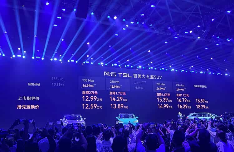 车家号·0浏览·2026-04-13 20:54 · 四川当一台车长4米87、轴距近3米的中型SUV,能做到零百5秒级、馈电油耗3.9升、综合续航超2000公里,你很难再用“将就”来形容它。4月13日,奇瑞 风云T9L(参数|询价)全球上市,售价12.99万-18.69万元,抢先置换价12.59万-18.29万元,这款定位“智美大五座SUV”的新车,用实打实的数据告诉市场,混动SUV的全能时代来了。
