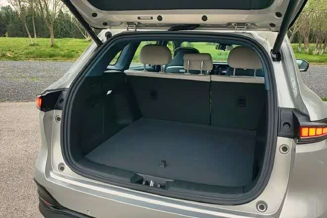 空间上,得益于2800mm的轴距,后排膝部空间很宽裕,头部空间也足够。后备箱常规容积表现中规中矩,但底板可以向下沉降,形成725L的下沉式可变空间,官方称能放下10个20寸登机箱。全车共有21处储物区域,包括中控扶手台、门板杯架、手套箱等,日常零碎物品不难找到位置。
