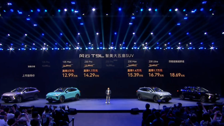 4月13日,奇瑞风云旗下全新车型 风云T9L(参数|询价)正式上市。新车共推出4款车型,售价区间12.99-18.69万元。新车定位中型SUV,采用2+3式的五座布局。