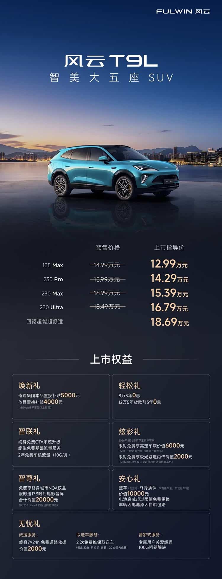 在家庭用户最在意的空间、续航、智能、质保四大维度上,风云T9L都给出了超出同级的答案。与其在众多“偏科生”之间反复纠结,不如一步到位选择一台久用不悔的家用SUV。