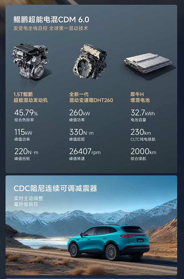 家庭用车最怕什么?不是在加油就是在找充电桩的路上。风云T9L搭载鲲鹏超能电混CDM6.0系统,综合续航突破2000km,实测芜湖至北京往返2037km。馈电油耗低至3.9L/100km,这数据在同级别车型当中也是又在提升了一个级别。