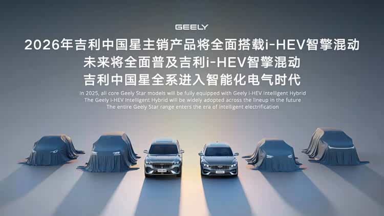 官方规划显示,2026年吉利旗下“中国星”系列的主销产品,包括星瑞、星越L、第四代博越L以及第5代帝豪,将全面搭载i-HEV智擎混动技术。其中,星越L i-HEV和星瑞i-HEV车型将于4月19日率先开启预售。