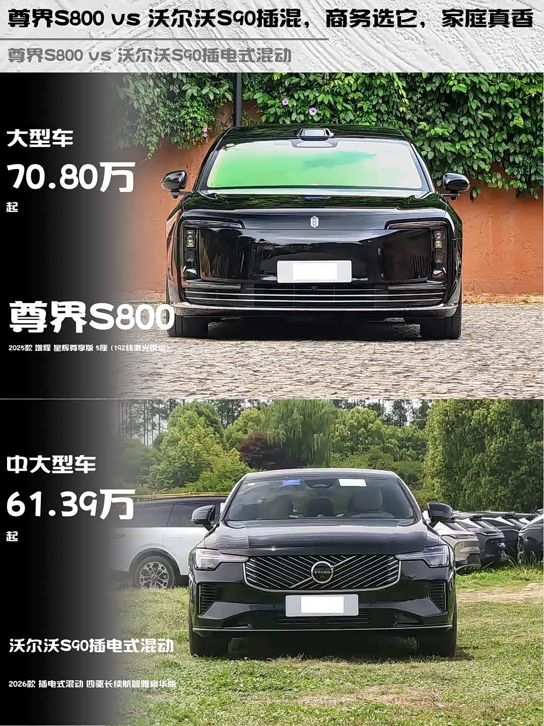 尊界S800 vs 沃尔沃S90插混,商务选它,家庭真香