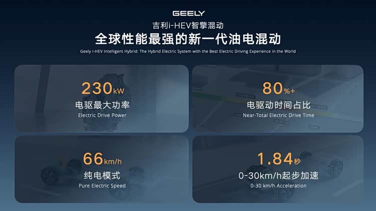 更关键的是,它不是靠牺牲动力换来的低油耗。以前的混动,大多是“油为主、电为辅”,电机就是个打辅助的,高速超车、市区起步,还得靠发动机嘶吼。而吉利这套i-HEV,直接把逻辑反过来了,搞的是“电驱主导、油电协同”,发动机和电机完全解耦,各干各的擅长的事。