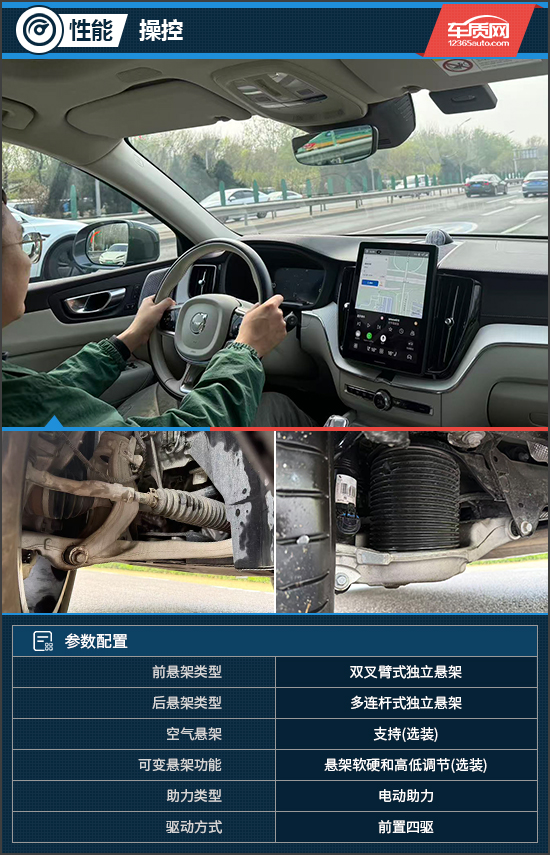 底盘方面,评测车采用前双叉臂式+后多连杆式独立悬架组合,并选装了空气悬架。日常行驶时,底盘在振动处理上比预期更加柔韧与干脆,尤其在较大幅度转向或紧急制动时,车身姿态控制到位,在操控与舒适之间取得了较为理想的平衡。
