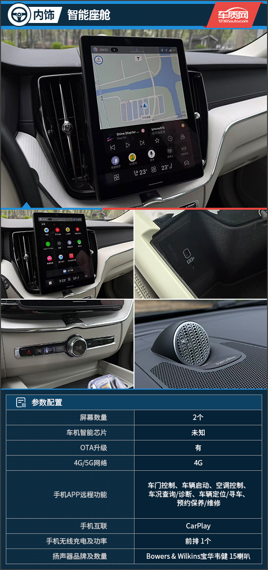 多媒体系统最直观的变化在于中控屏由老款嵌入式更换为悬浮式设计,尺寸也扩大至11.2英寸,造型更加新颖时尚。内置原生谷歌安卓系统,不仅功能体验有所提升,语音助手的响应速度也达到了主流水平,随叫随到。Bowers & Wilkins宝华韦健殿堂级音响系统,通过15个精准调校的Hi-Fi扬声器与创新的Fresh Air低音炮,再配合1410W大功率,带来卓越的音质感受。