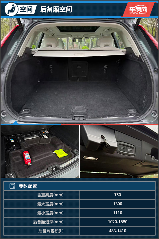 后备厢布局规整,空间利用率高,常规容积为483L。后排座椅支持比例放倒,放倒后容积可扩展至1410L,便于放置大件物品。