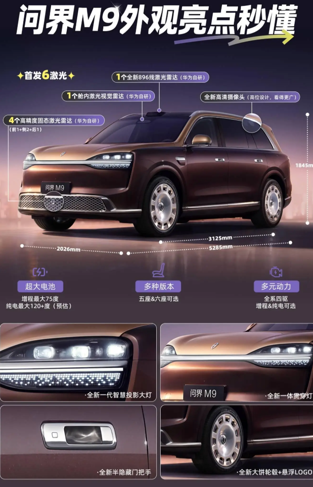 全新一代问界M9今日首发亮相,搭载6激光雷达立体矩阵