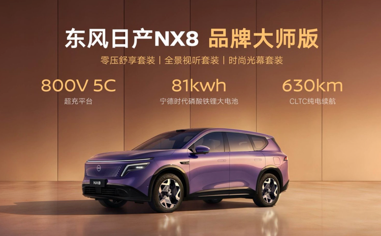 东风日产NX8是基于天演架构2.0打造,它是东风日产全栈自研、融合全球技术于本土需求的新能源底层平台,是由中方主导的产品定义。新车提供纯电、增程双动力,纯电版车型搭载800V高压碳化硅平台和5C超充技术,采用单电机布局,最大功率分别为215kW和250kW,提供73kWh和81kWh两种规格电池组,CLTC纯电续航里程分别为580公里、630公里及650公里,10%充至80%仅需12分钟。
