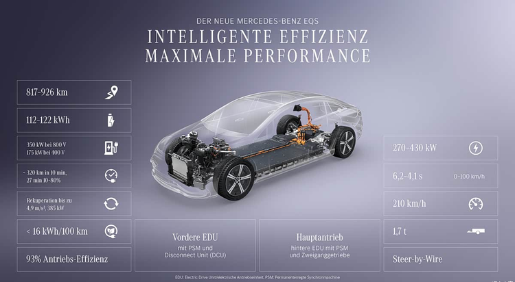 日前,新款 奔驰EQS(参数|询价)的官图正式发布。作为曾经创下量产车最低风阻纪录的车型,这次焕新带来了不少实质性升级。新车搭载了奔驰最新的eATS 2.0电驱系统,同时升级为800V高压架构,这也让它的WLTP工况最大续航里程达到926km。在德国市场,这款车的售价为94403欧元,换算成人民币大约是75.5万元,整体定位保持了高端纯电车型的水准。