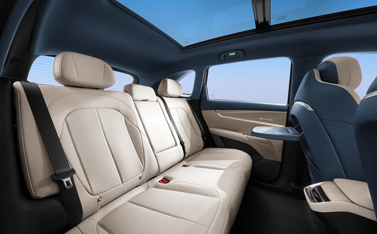 在舒适性配置上,这款车提供了前后排座椅的通风、加热和按摩功能。主驾驶座椅支持电动调节,后排座椅的靠背角度和头枕高度也可以调整。车辆还配备了540°高清全景影像和行车记录仪,音响系统采用了18枚扬声器。全系车型的副驾驶座椅都采用了零重力设计。内饰配色有三种选择:幕夜黑、热浪橙和慕雪青山。