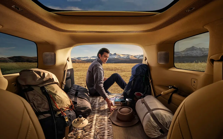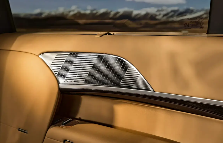 前排中央通道采用悬浮式中岛设计,集成智能升降充电面板与隐藏式升降杯托,具备储物功能。车门内饰板采用星绒透光皮革材质,搭配星辰缎带氛围灯,光线可透过皮革形成相应光影效果。该车搭载AI调光隐私玻璃,官方提供的数据显示,其可实现0.16秒极速变色,支持逆光、隧道场景自动无极调光,可阻隔99.9%紫外线。