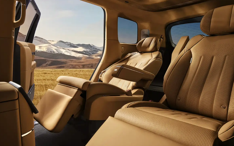 小鹏GX采用2+2+2六座独立布局,全车座椅采用Nappa真皮材质。前排主副驾座椅支持16向电动调节、16点按摩功能,同时配备三挡可调通风、加热及腿托加热功能;副驾配备女王零重力座椅,支持一键舒躺模式,集成安全带与座垫气囊。
