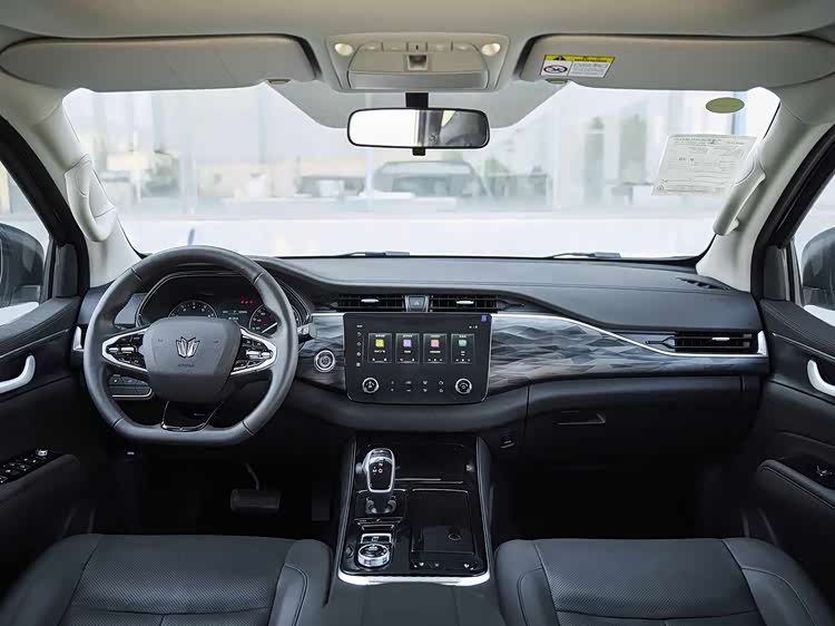 进入车内,内饰主打硬派实用 + 科技质感,中控台采用分层悬浮设计,大面积软性材质包裹,搭配钢琴烤漆与金属饰板,触感舒适,兼顾档次感与耐用性。12.3 英寸高清悬浮中控屏(劲酷版 10 英寸)是核心亮点,内置车机系统,支持华为 HiCar、苹果 CarPlay、百度 CarLife 等多种互联方式,操作流畅,语音控制可实现空调、导航、车窗等功能操控,提升行车安全性。方向盘采用真皮材质,多功能按键布局合理,手感出色;电子换挡杆设计简洁,操作便捷。空间是全新帕拉丁的核心优势之一,2850mm 超长轴距带来越级乘坐体验。前排头部空间约一拳,后排腿部空间超两拳,头部一拳有余,三人同时乘坐不拥挤。