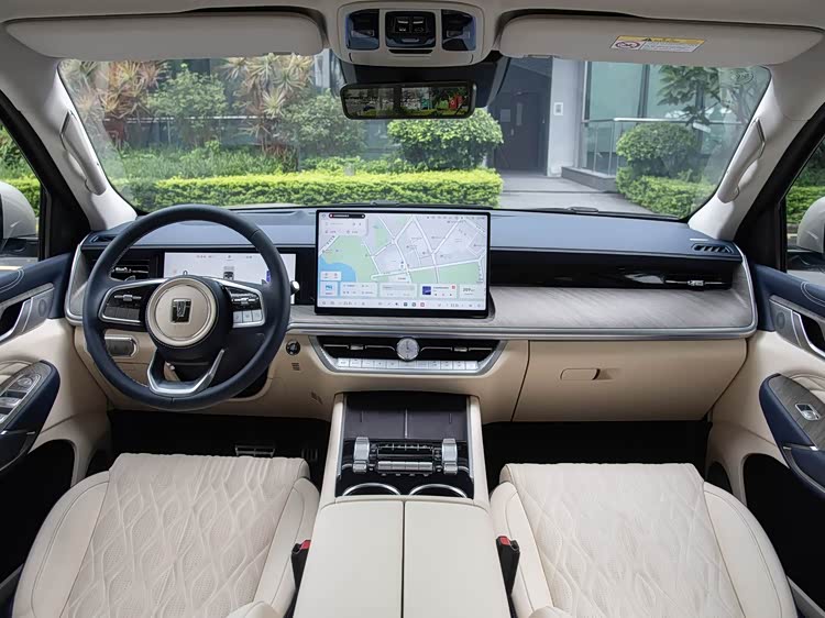 进入车内,内饰主打中式豪华 + 科技智能,中控台采用分层悬浮设计,配备15.6 英寸 2.5K 悬浮中控屏 + 12.3 英寸全液晶仪表 + HUD 抬头显示,三屏联动,内置高通 8295P 芯片 + Coffee OS 3.0 系统,支持 AI 语音、车联网、华为 HiCar / 苹果 CarPlay,操作流畅、响应迅速,还集成越野路书、车身姿态、海拔气压等专业数据显示。座椅采用Nappa 真皮一体式运动座椅,主副驾 12 向电动调节、加热 / 通风 / 按摩,后排座椅支持角度调节、加热,侧翼支撑到位,长途乘坐舒适性拉满。