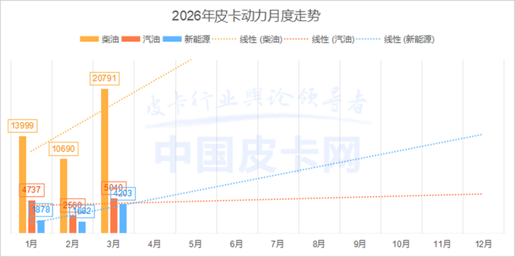 品牌竞争格局在3月呈现分化态势。长城皮卡以14168辆的销量和45.1%的市占率继续稳居行业龙头,但一季度累计下滑12%也反映出行业老大也面临着成长压力;江铃皮卡表现稳健,在深厚的柴油机技术和稳固的政企采购渠道加持下,3月售出4556辆,同比增长15.4%,一季度累计微增3.7%。