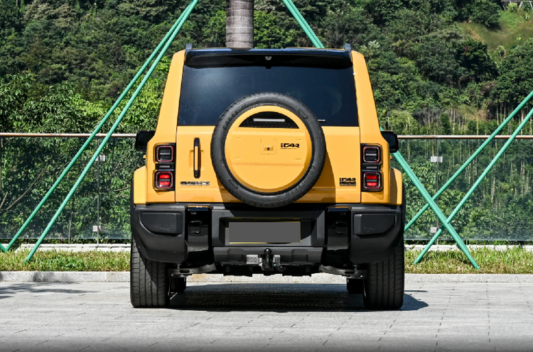 iCAR V27的尾灯组采用竖向排列的方式,同时后尾门的开启方式以及外挂式备胎,这些都是硬派SUV的典型特征。与此同时,接近两米的车宽搭配高配版本265mm的胎宽,这些也让该车看起来更有力量感。