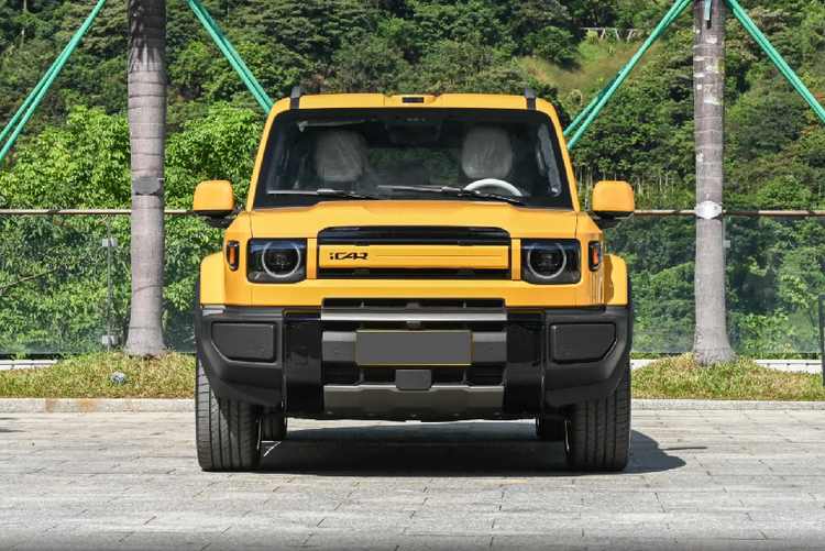 从外观设计上来看,iCAR V27采用了现在仍然流行的方盒子造型,整体看起来非常硬派。前脸集成了与车身撞色设计的格栅,配上两侧非常经典的椭圆形灯组,以及粗壮的前保险杠,这些都会给人一种虎视眈眈的感觉。