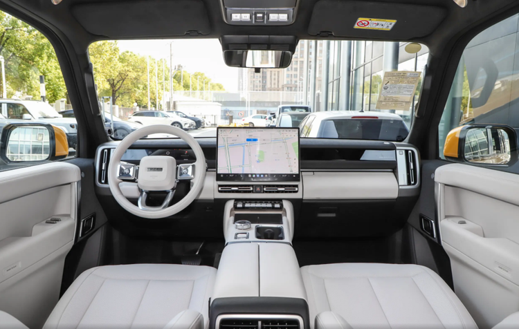 而坐进车里,你会发现iCAR V27的内饰同样是现代风+越野风混搭的设计,不仅有时下主流的15.4英寸悬浮式中控大屏,而且A柱内侧还集成了单独的扶手来提升驾驶员和副驾乘客的稳定性。而在其它设计上,iCAR V27还在副仪表台区域保留了实体按键和驾驶模式切换旋钮,这点对喜欢实体操作的朋友来说是个好消息。而在其它配置上,iCAR V27还标配高通8295芯片,搭配融合AI中枢大模型和DeepSeek的语音助手,这些也能给用户带来更好的人机交互体验。