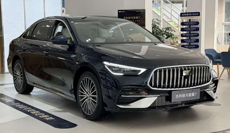 从实车看,银河星耀7延续了家族化设计语言,很有燃油车的典型设计风格。前脸搭载直瀑式格栅,内部为熏黑设计,饰条则是银色镀铬,质感上看起来不错。LED大灯造型贴合车身弧度,里面有造型犀利的日间行车灯。下方雾灯区域及进气口都进行了熏黑处理,内部有银色饰条。无论是家用还是商务,银河星耀7气场都不错。