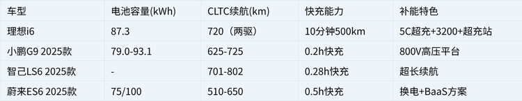 蔚来ES6 2025款采用75kWh和100kWh两种电池包,CLTC续航分别为510km和650km 。虽然绝对续航不占优势,但其BaaS电池租用方案可将车价降至26.8万元起 ,配合超过2100座换电站 ,在补能便利性上形成独特护城河。