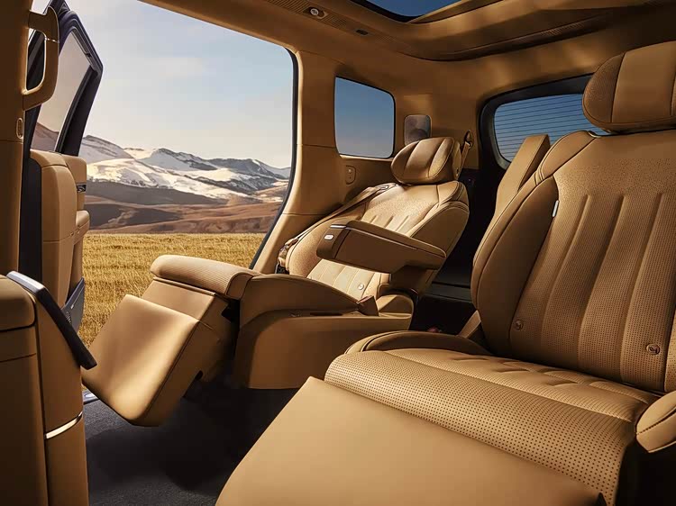 至于二排,则配备了两个独立座椅,而且还有腿托。其它具体配置方面,还有二排右侧配备零重力座椅、左侧飞航舒享座椅、二排座椅电动扶手、二排座椅16点按摩/16向电动调节(最多)/3挡通风/加热/腿托加热等,再加上可翻转娱乐屏,左侧小桌板、右侧磁吸拓展坞,可以说二排的配置直接拉满了。