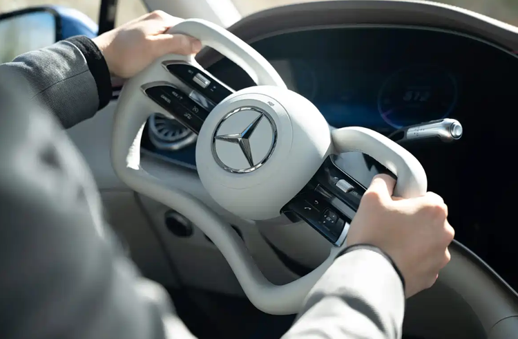 内饰最大的亮点就是全新半辐式方向盘,上下弧形的设计可以减少视线遮挡、方便上车下车;奔驰还为它专门研发了气囊,并且搭配线控转向+后轮转向技术,在5.2米的大车上也可以实现小角度大转弯,城市掉头和停车更加灵活。这套系统经过100万公里的测试并且具备双重信号冗余功能,安全性得到保障。