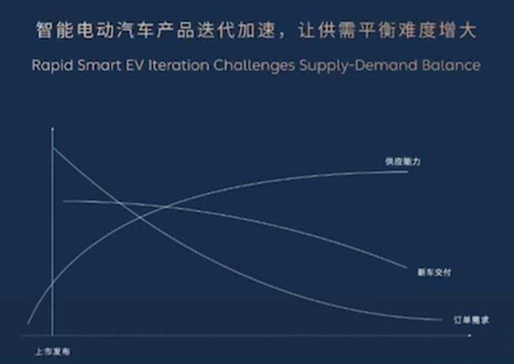 据统计,2024年至2025年上市新车超过2100款,其中全新车型超过300款,平均每天上市三款新车,而消费者购车等车的耐心却小于8周,市场情绪倒逼企业盲目追逐“上市即交付”。早期,上市即交付是为了锁定用户,防止意向购车者流向竞品,但相比过去燃油车上市造势、订单积累、产能爬坡累计3-5个月稳定销量的速度,上市即交付违背了制造业最基础的物理规律,让原本需要时间沉淀的产能爬坡期,被企业硬生生自我消化。前期为了满足积攒的订单,整条产业链三班倒、招人、投设备,等爬坡完成,产品热度退潮、需求骤降,紧接着就是设备闲置、人员裁减和沉重的转产压力。李斌简单一笔账,就这么一折腾一款车型白白浪费几个亿都是正常现象。原本3到5年才能让企业良性迭代升级的投入产出周期被压缩到半年,企业不仅赔本,还给后半程竞品留足了摸着自己过河的空间。