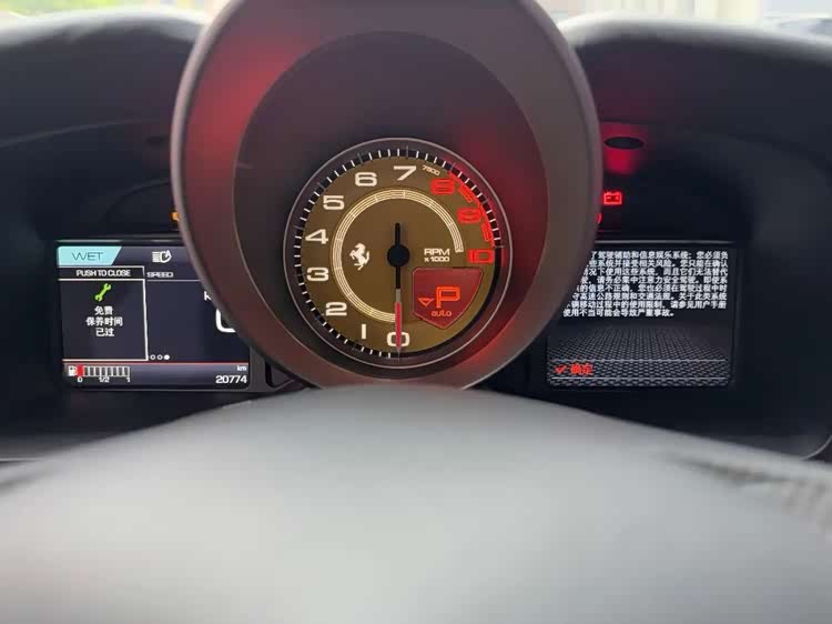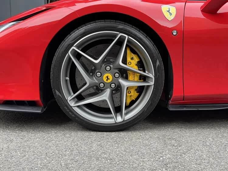 外观方面,可以看到这辆车配备了AFS前照灯系统、20英寸星型轮毂、黄色刹车卡钳、碳纤维侧部分流器、翼子板上带有法拉利车队徽标等配置,外观部分的选配中规中矩,选装有这款轮毂是加分项,这款轮毂样式运动且经典,也比较耐看。
