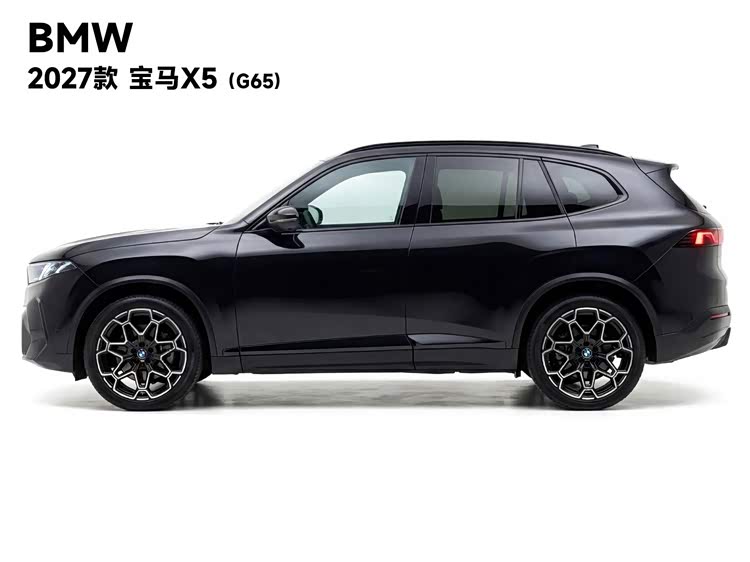 侧面线条倒是保留了X5一贯的硬朗风格,但细节上明显更简洁了。门把手换成了隐藏式,车窗边框也更细,整体看起来干净利落。轮毂用了那种多边形切割的设计,挺有新能源车的味道。说实话,这侧面轮廓要是盖住车标,你说这是台国产新势力我都信。